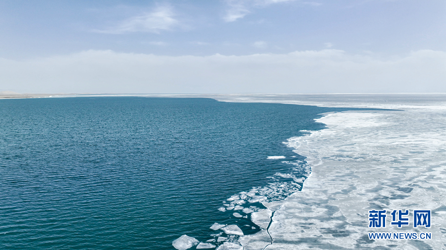 這是4月8日拍攝的青海湖開湖景觀(無人機照片)。新華網(wǎng) 宋忠勇 攝