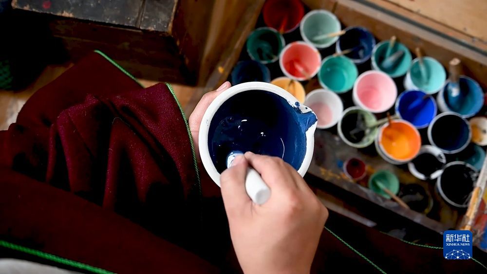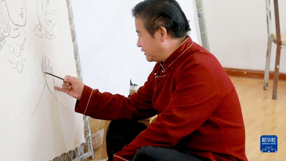 打磨布面、研制畫料、著色、暈染、勾線……唐卡創(chuàng)作的每一個(gè)環(huán)節(jié)都考驗(yàn)著畫師的專注力和耐力。