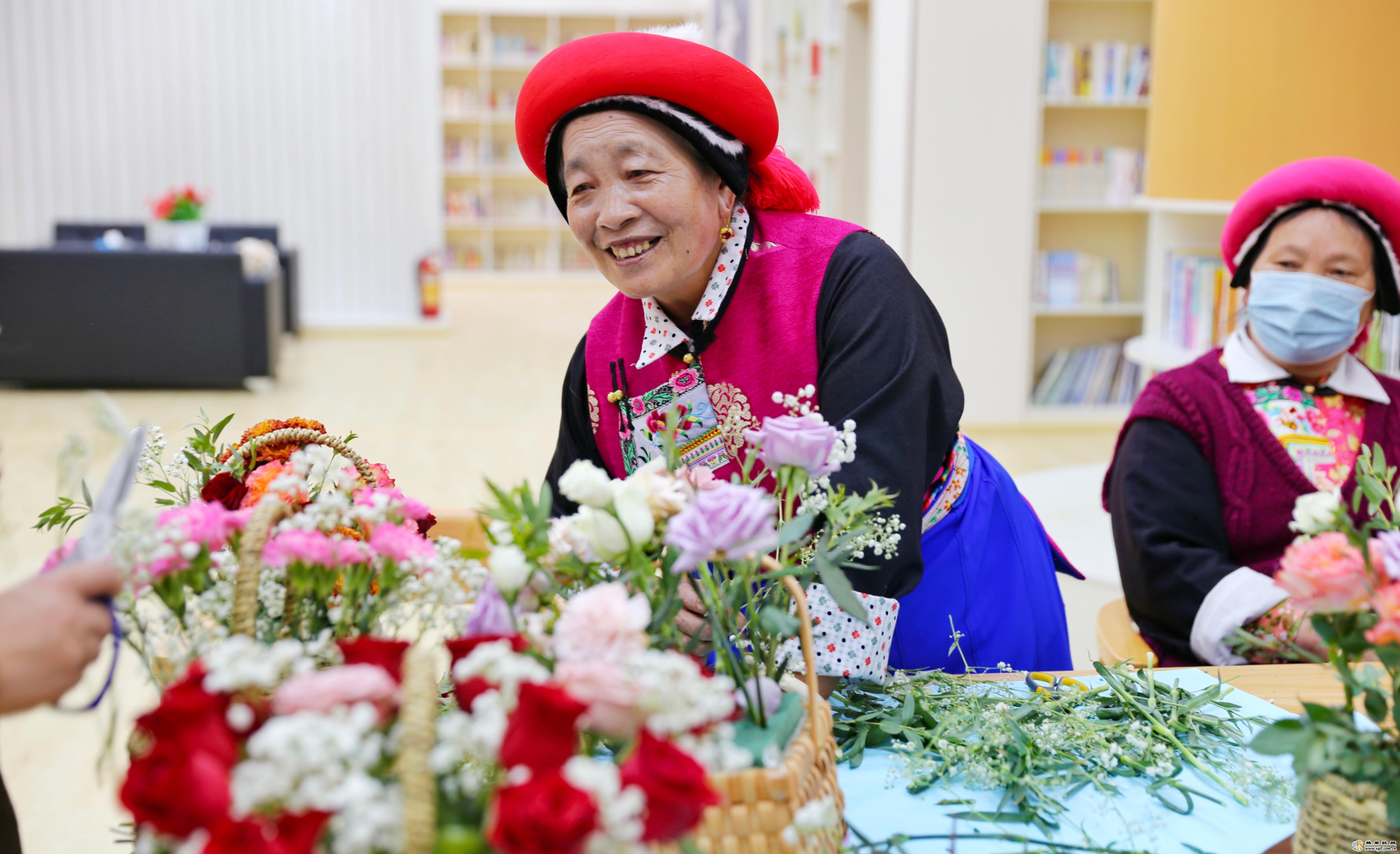 隨后,還組織媽媽們學(xué)習(xí)了插花手藝,活動室內(nèi)充滿了鮮花的芬芳和大家的歡聲笑語。