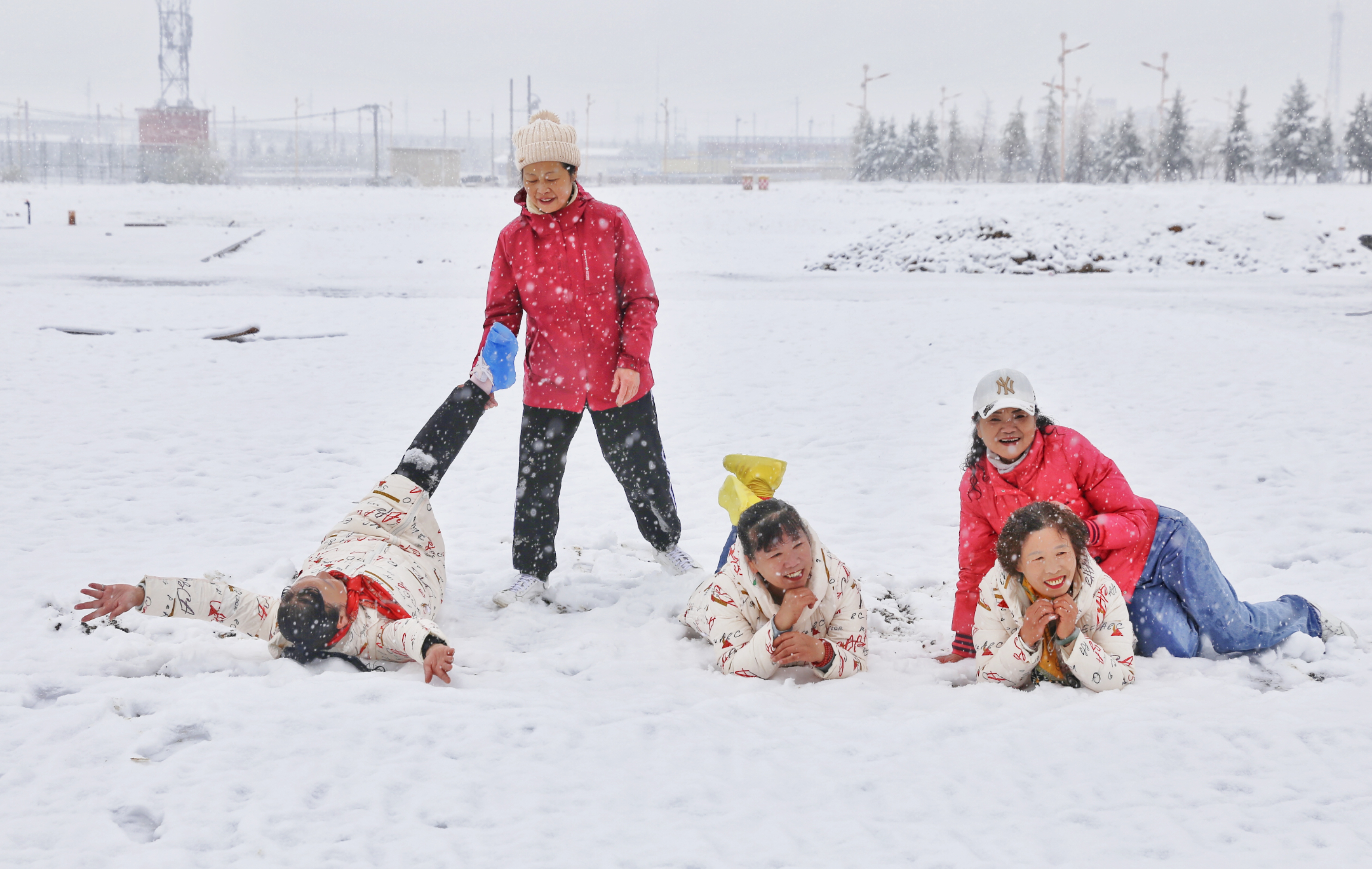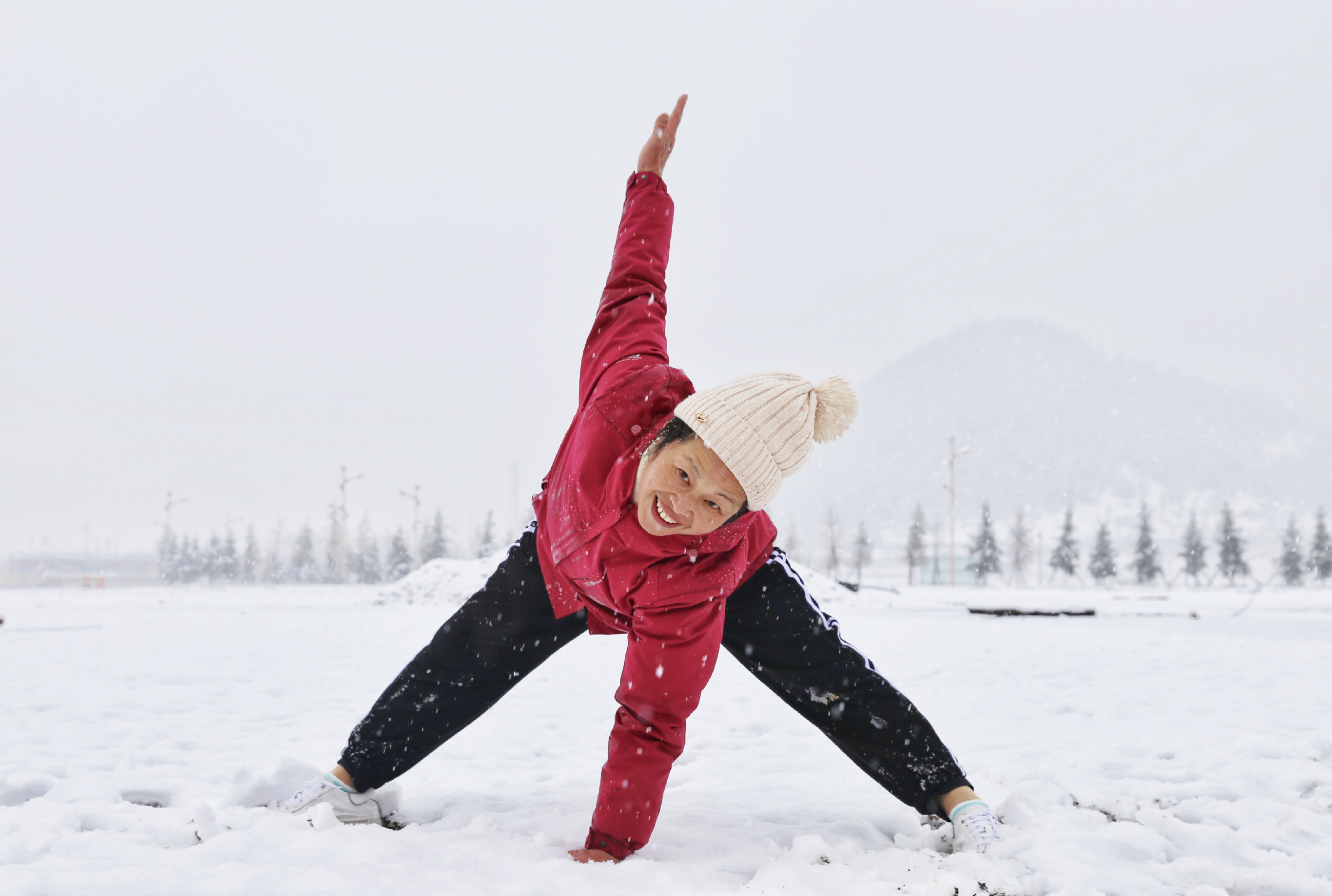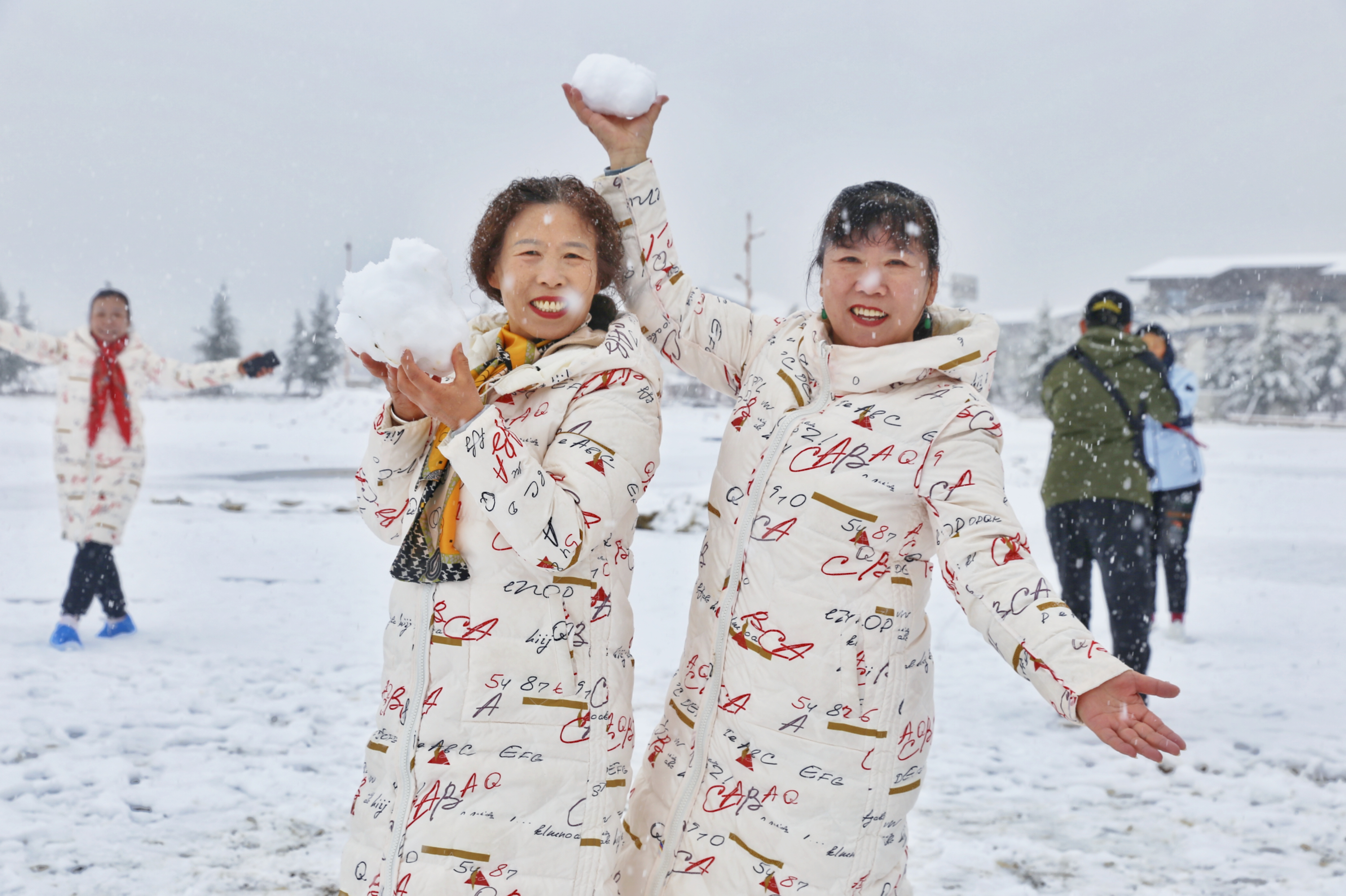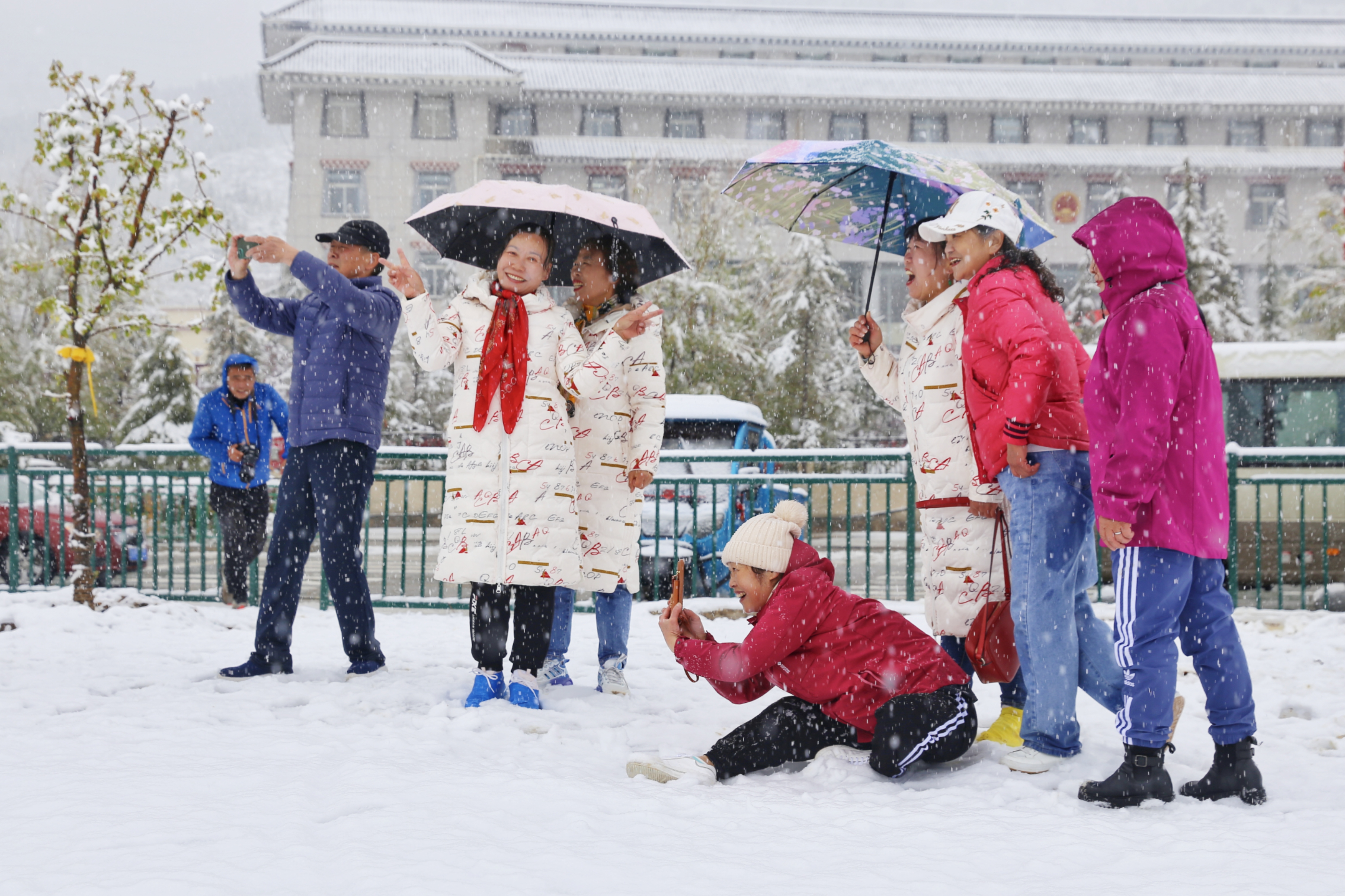 5月15日,香格里拉迎來一場夏雪,大雪紛飛的雪地中一群來自貴州的“嬢嬢團”正興奮的玩雪、拍照,“太有意思了,五月也能玩到雪,很難得?!苯衲?5歲的劉嬢嬢告訴記者,她們在香格里拉游玩三四天了,今天準備返程,出城路上被雪景吸引便索性再留出半天時間看雪。雪地中的嬢嬢們精氣十足,捏雪球、劈腿、下腰、打滾……大家紛紛擺出自己最拿手的pose拍照記錄下這令人驚喜的美景。