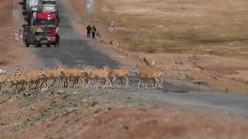 藏羚羊“過馬路”,車輛請(qǐng)注意!