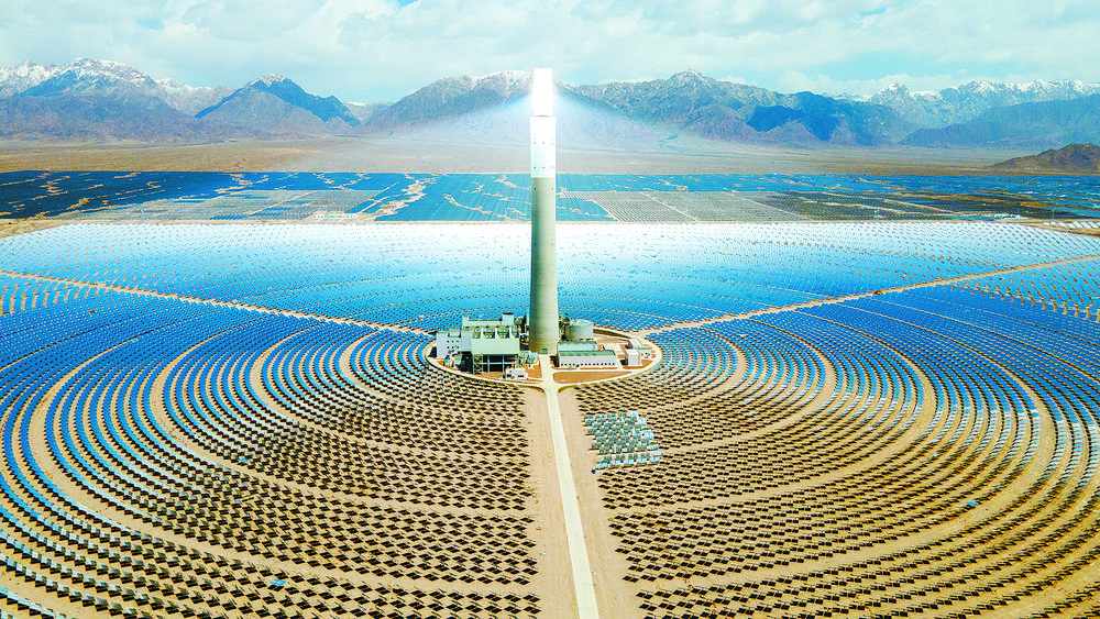 在中國北緯37°附近,光熱充沛,氣候干燥。以“光熱之都”——青海省海西蒙古族藏族自治州德令哈市為起點,沿著315國道一路向西,一座200米高的吸熱塔與四周環(huán)繞的27135面光熱定日鏡一道,搭建出一個壯觀的太陽能光熱發(fā)電“矩陣”。