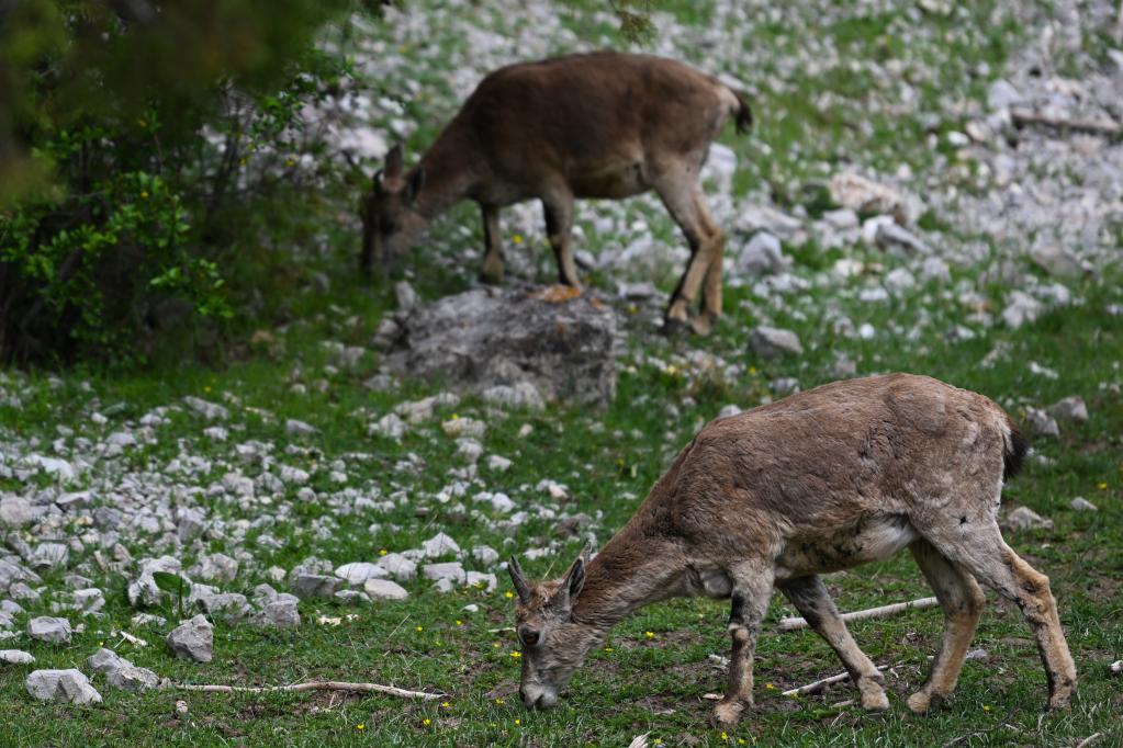 這是6月18日在青海省玉樹(shù)藏族自治州囊謙縣境內(nèi)拍攝的覓食的巖羊。 新華社記者 柳澤興 攝