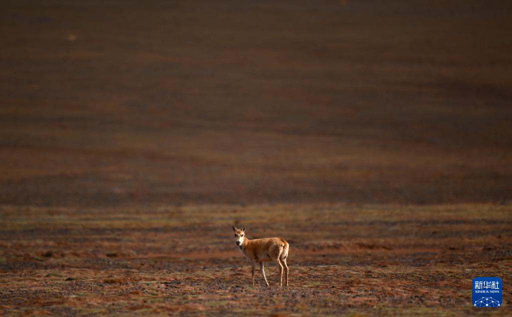 一只藏羚羊在可可西里卓乃湖區(qū)域活動(dòng)(6月18日攝)。新華社記者 張宏祥 攝