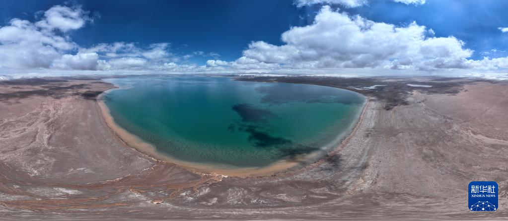 這是6月17日拍攝的可可西里卓乃湖(無(wú)人機(jī)全景照片)。新華社記者 張宏祥 攝