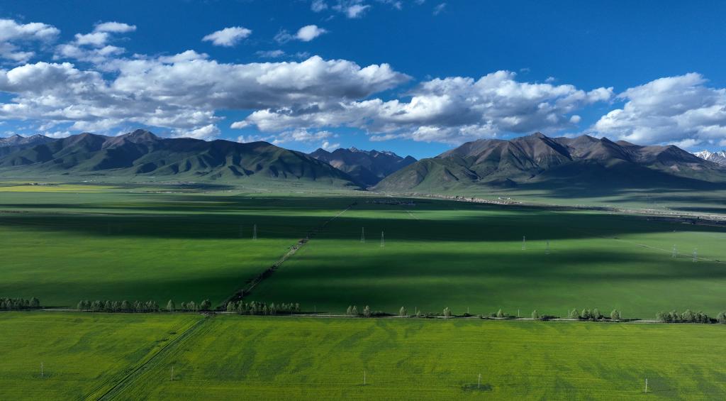 這是7月3日拍攝的門源縣境內(nèi)風(fēng)光(無人機(jī)照片)。新華社記者 韓方方 攝