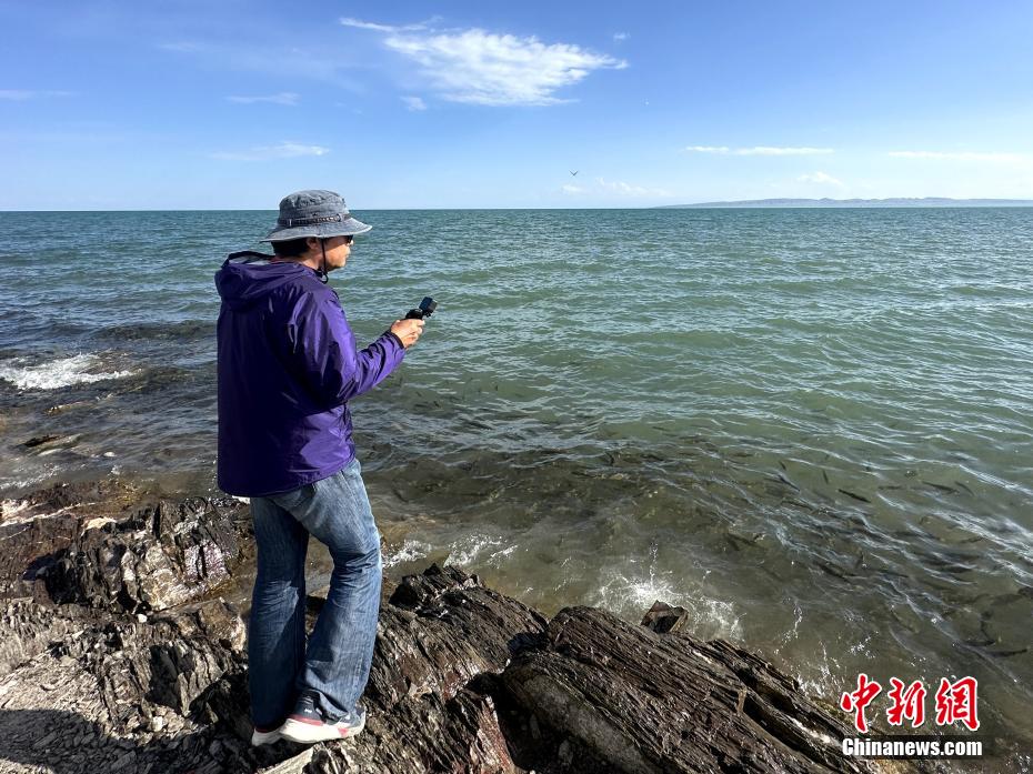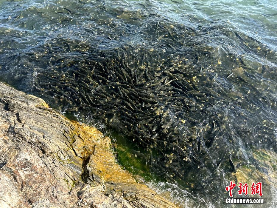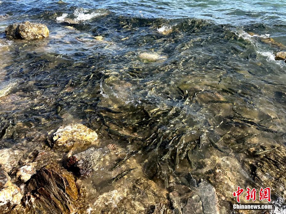 游客拍攝青海湖斷崖密集的湟魚。李雋 攝