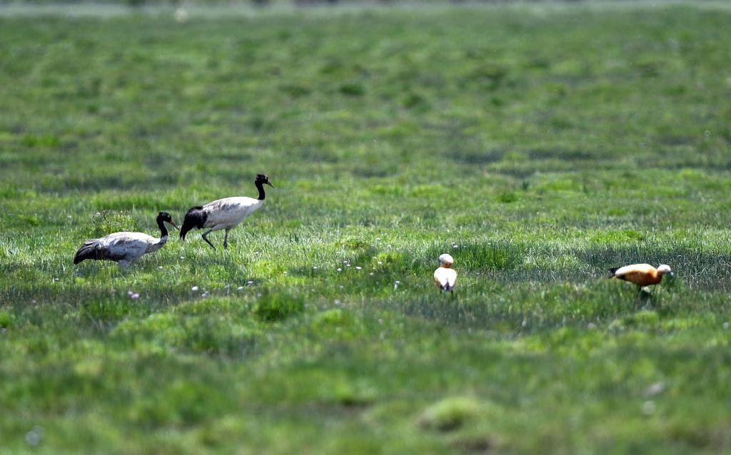 “黑頸鶴和斑頭雁數(shù)量現(xiàn)在肉眼可見地增多了?!辈湃实┲苷f,草長得好,濕地面積不斷擴(kuò)大,來到這里的鳥類才會不斷增加。