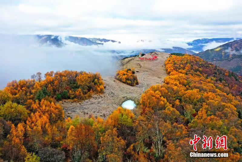四川馬爾康賽馬山:云海、彩林美如畫
