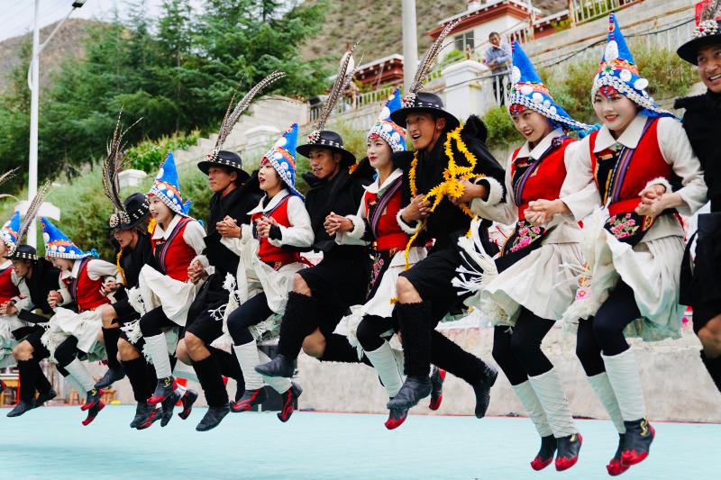 活動中,州歌舞團(tuán)高原紅色文藝輕騎兵們?yōu)榇迕駧砹艘粓鑫幕⒀?,歌曲、舞蹈、樂器等藝術(shù)形式精彩紛呈。州歌舞團(tuán)還結(jié)合黨中央決策部署和地方實(shí)際創(chuàng)作了小品類節(jié)目,把黨的二十大精神、民族團(tuán)結(jié)、感恩教育、法治觀念等內(nèi)容融會其中,用地方方言、民族語言,把黨的聲音傳遞到千家萬戶,把黨的溫暖與關(guān)懷送到百姓心中。