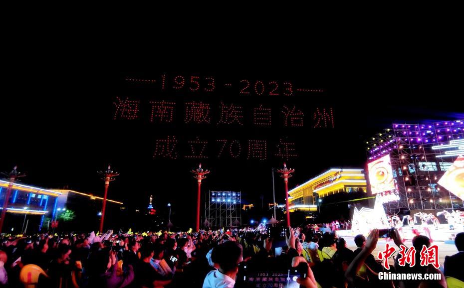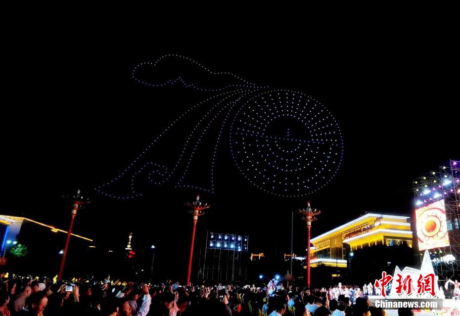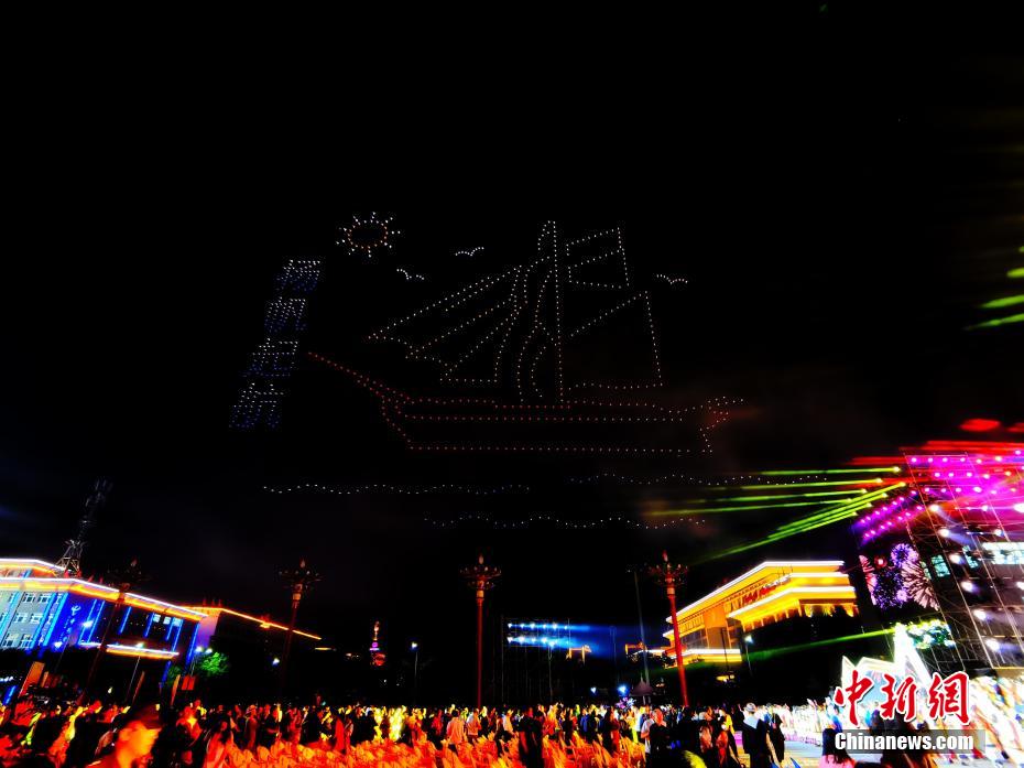 慶祝青海海南州成立70周年 無(wú)人機(jī)秀點(diǎn)亮高原夜空