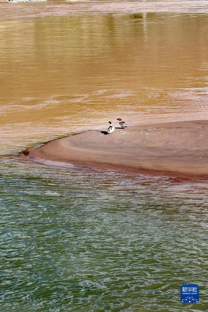 通天河與巴塘河交匯處的兩只水鳥(7月22日攝,無人機照片)。 新華社記者 劉詩平 攝