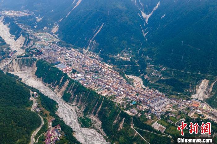 航拍加快災后重建的瀘定磨西鎮(zhèn)全景。中新網(wǎng)記者 劉忠俊 攝