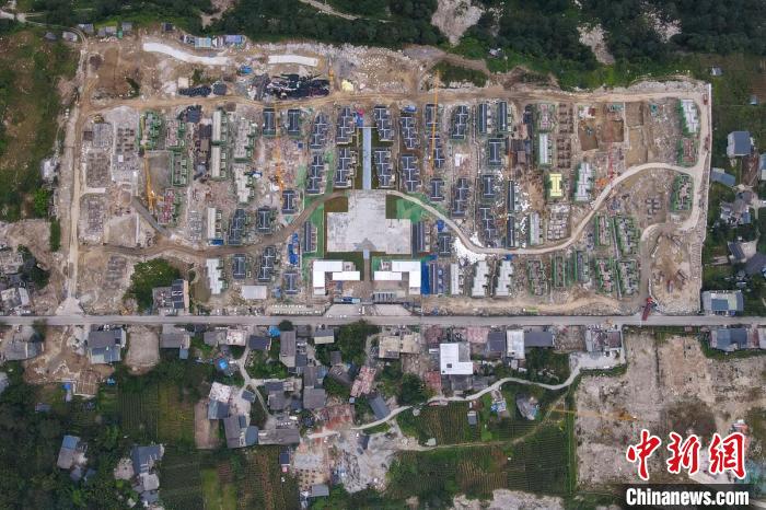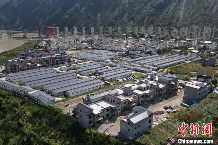 空中俯瞰正在建設中的磨西鎮(zhèn)大杉樹村(幸福新村)集中安置點。中新網(wǎng)記者 劉忠俊 攝