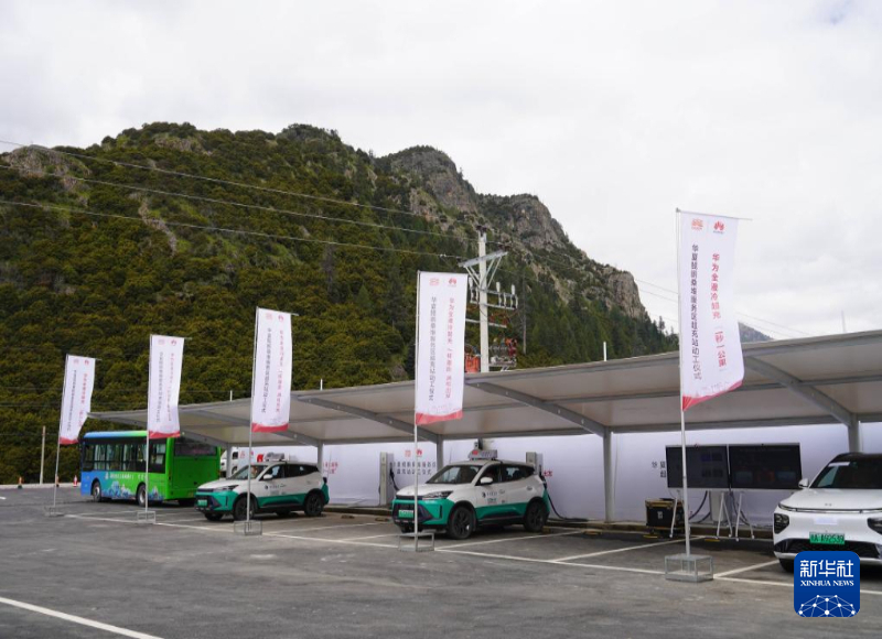 這是G227理塘至亞丁公路桑堆服務(wù)區(qū)的汽車充電站。楊鎧樂(lè) 攝