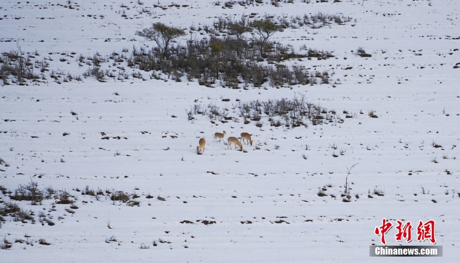 12日,在青海湖北岸的青海省海北藏族自治州剛察縣哈爾蓋“羚羊小鎮(zhèn)”,成群的普氏原羚在雪中覓食、漫步。[詳細] -