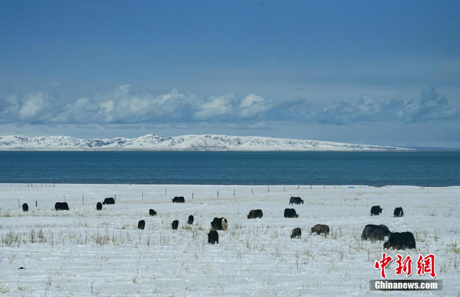 近日,受冷空氣影響,青海省部分地區(qū)迎來降雪,青海湖畔的草場披上了厚厚的白雪,成群牛羊在雪地覓食,與湛藍的湖水、遠處屹立的雪山構成一幅幅靜謐柔美的生態(tài)畫卷。
