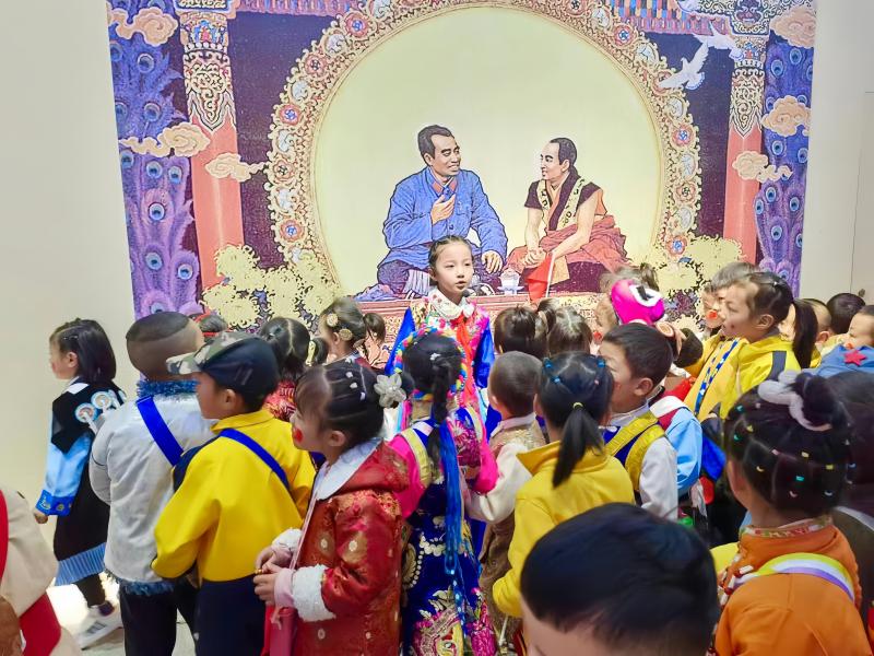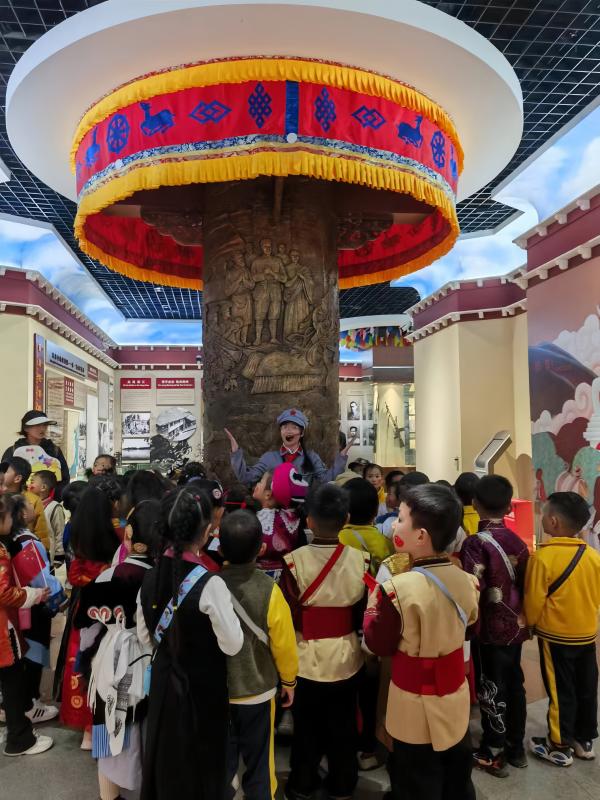 展館內,“格?;ㄐ⌒≈v解員”進行著生動地講解,通過一件件文物、一幅幅圖片、一個個互動景觀訴說雪域高原上的紅色歷史,引導小朋友們體悟那段不平凡的崢嶸歲月,在行走的課堂里收獲知識和成長。