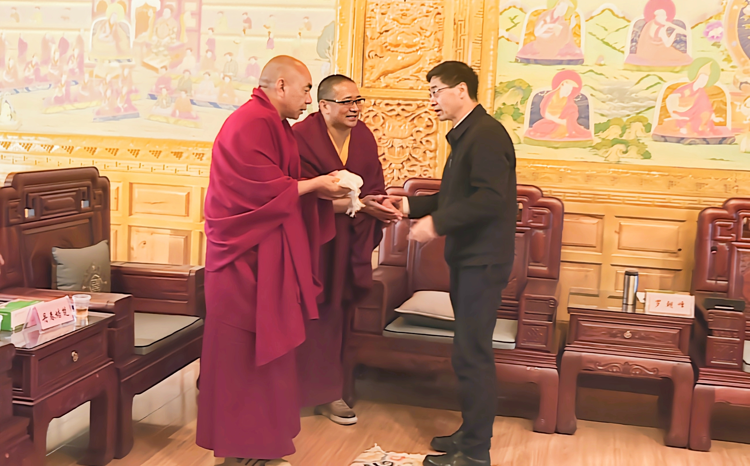 在松贊林寺,羅朝峰與宗教界代表人士深入交流座談,詳細了解僧人學修、生活等情況,面對面傾聽他們的心聲、訴求,引導僧人們從多年來國家面貌、人民生活發(fā)生的變化,松贊林寺基礎(chǔ)設施、僧人修行條件的變化中憶苦思甜,感念黨恩。希望他們珍惜和諧穩(wěn)定的大好局面和良好的修行生活條件,深入踐行習近平總書記提出的“政治上靠得住、宗教上有造詣、品德上能服眾、關(guān)鍵時起作用”政治要求,繼承和發(fā)揚愛國愛教的優(yōu)良傳統(tǒng),進一步鑄牢中華民族共同體意識。