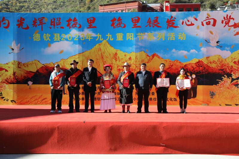 活動中,德欽縣縣委、政府負責(zé)人分別為2023年德欽縣“黨的光輝照梅里 梅里銀發(fā)心向黨”重陽節(jié)系列慶?;顒又罗o,并通報了德欽縣2023年經(jīng)濟社會發(fā)展情況。