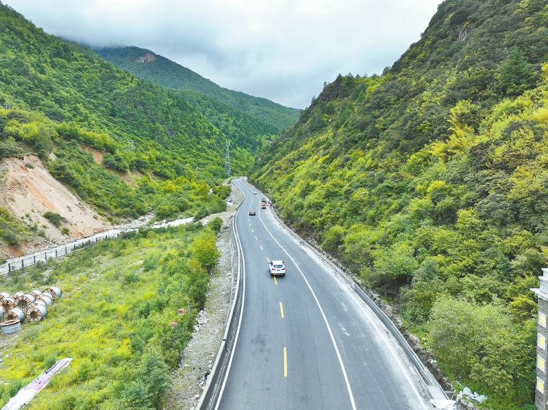 這樣的巧思,還體現(xiàn)在新都橋至雅江段的改造提升上。為了提升通行能力,本輪改造在有條件的地方增設(shè)了輔助通道。新都橋至雅江段的輔助通道是通過對既有公路進(jìn)行改擴(kuò)建實現(xiàn),但進(jìn)入雅江縣城前的路段沿河而行,原路狹窄,如果加寬會侵?jǐn)_河道,影響行洪安全。經(jīng)過多個方案的對比優(yōu)化,設(shè)計人員提升了這段路的設(shè)計等級,以橋梁和隧道為主要方式布線,并在輔助通道與國道318間增加了諸多橫向聯(lián)系,讓兩條路可以互相轉(zhuǎn)換。由此,形成了進(jìn)入雅江縣的“雙通道”,到縣城的車輛通行國道318,不到縣城的車輛通過輔助通道快速過境。