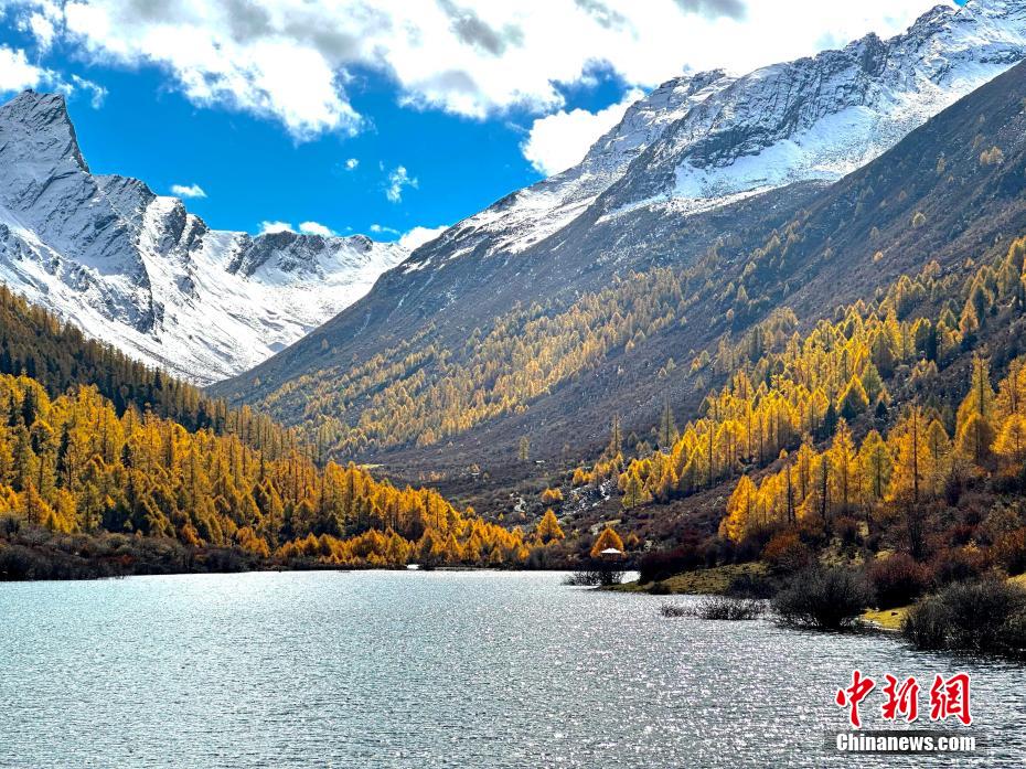 深秋時節(jié),四川省阿壩州小金縣瑪嘉溝迎來一年中最美季節(jié),雪山、冰川、海子、針葉林、原始森林等在藍(lán)天白云下變得色彩斑斕,層林盡染,已是一幅半山彩林半山雪的壯觀景象。陳邦亮 攝