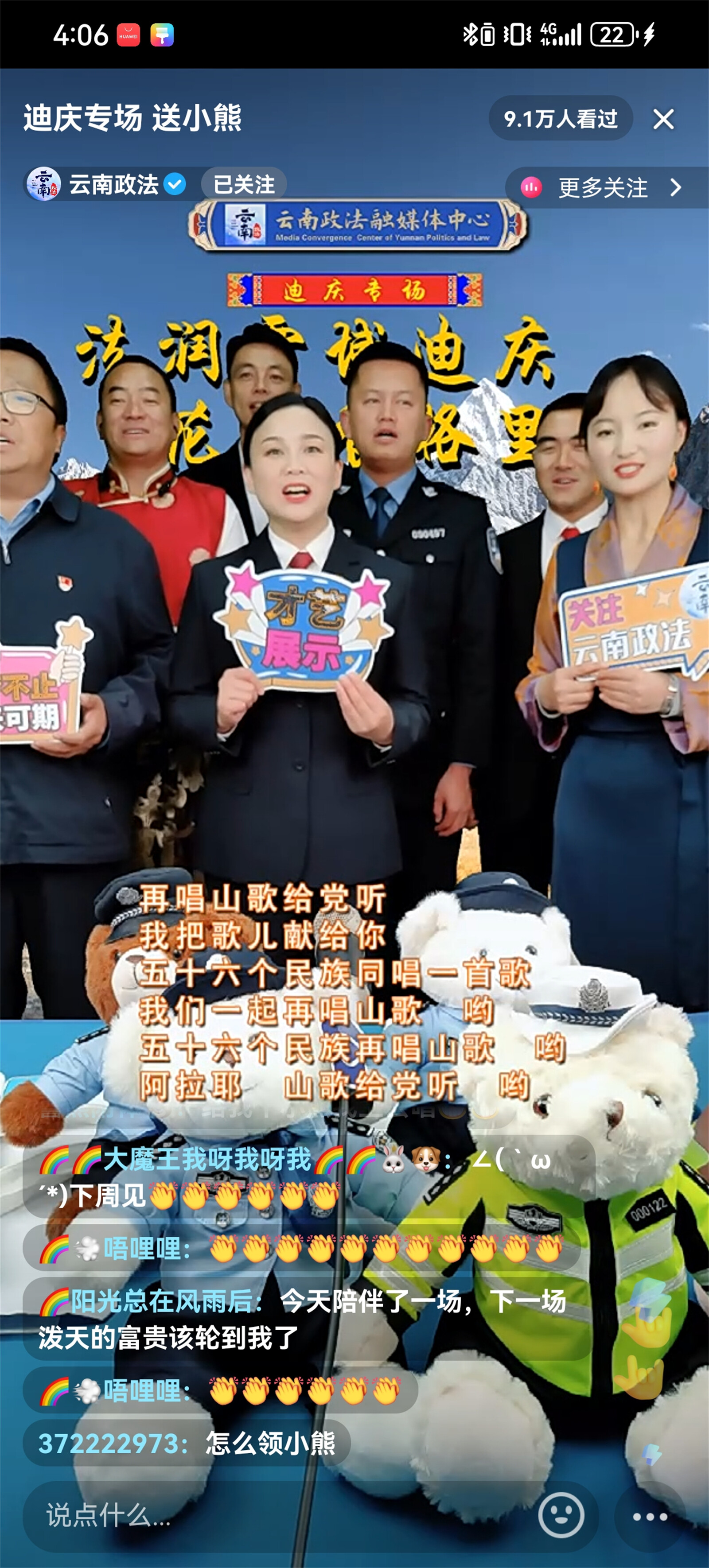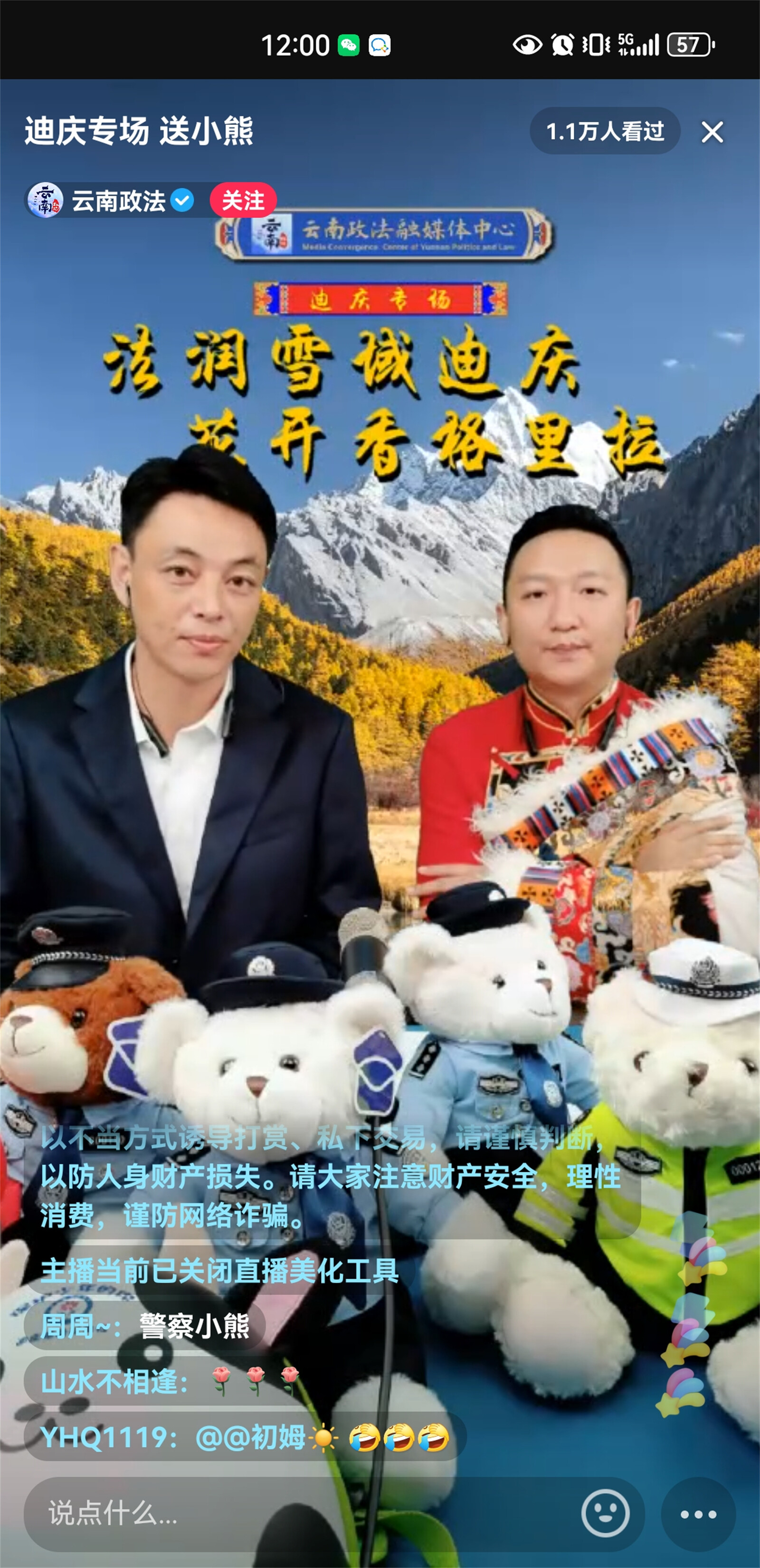 近日,迪慶州政法干警走進(jìn)云南政法普法強(qiáng)基直播間開展“法潤雪域迪慶、花開香格里拉”迪慶州普法專場直播,直播聚焦群眾關(guān)切,緊密聯(lián)系時事熱點(diǎn),帶廣大網(wǎng)友體驗(yàn)了一場內(nèi)容豐富的普法之旅,共吸引9.1萬人觀看,獲點(diǎn)贊超10.4萬。