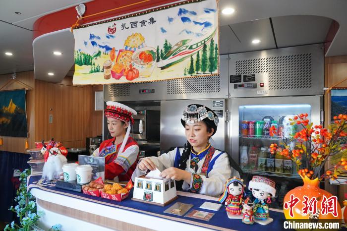 11月26日,麗江至香格里拉鐵路正式建成通車(chē)。圖為列車(chē)上的餐吧。中新社記者 劉冉陽(yáng) 攝