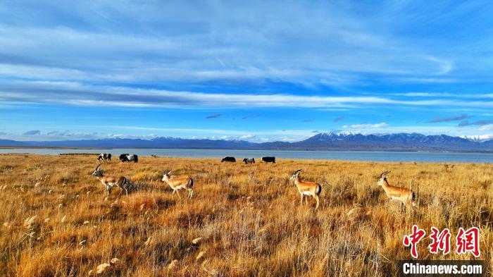 黑頸鶴、鵝喉羚多種野生動(dòng)物“同框”現(xiàn)身青海都蘭湖國家濕地公園