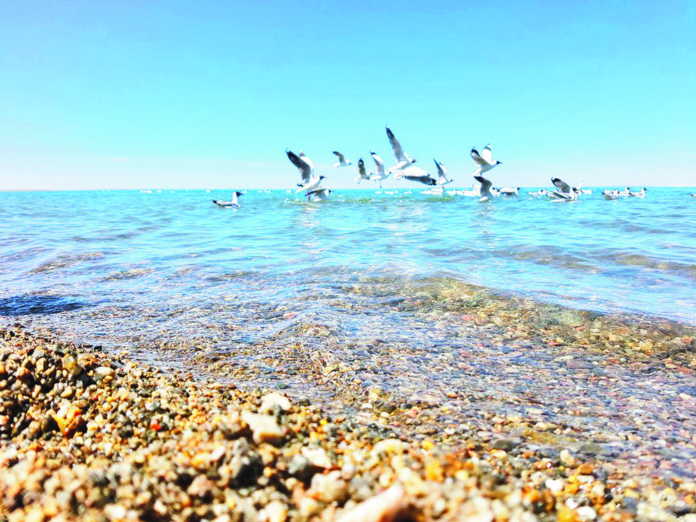 初冬時節(jié)的青海湖,寧靜內(nèi)斂,水波浩渺,飛鳥翔集,景色如畫。