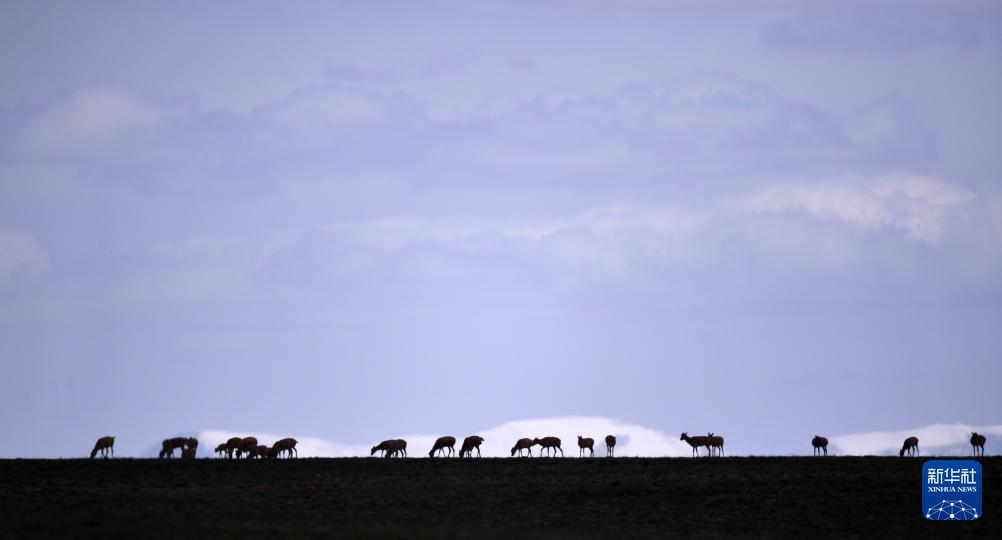 2023年7月27日,一群藏羚羊在可可西里境內(nèi)活動。新華社記者 張宏祥 攝