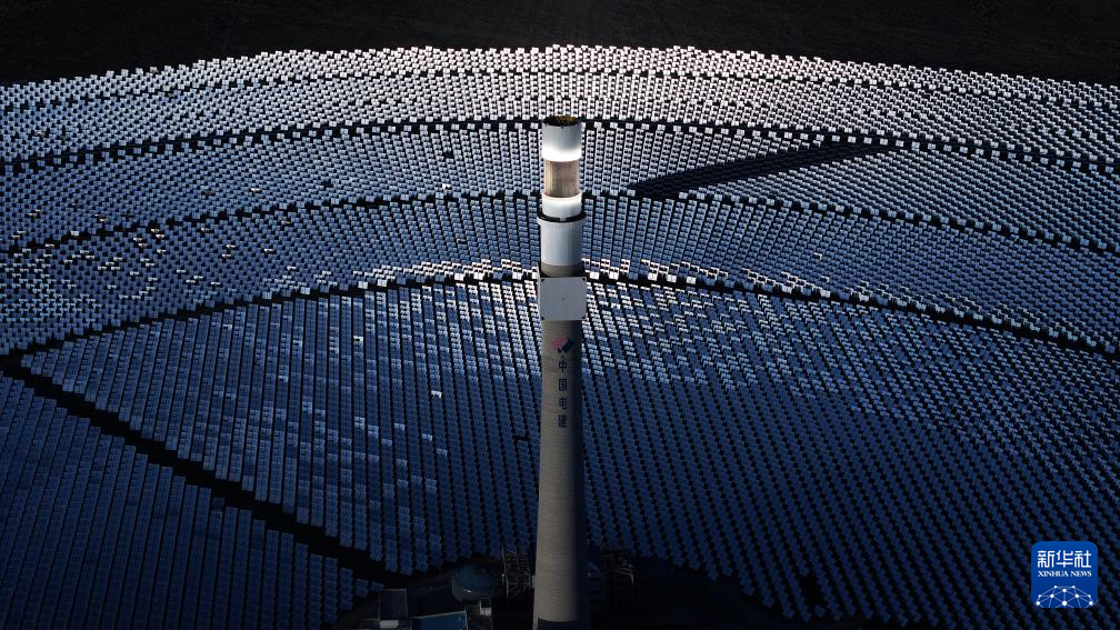 這是2022年6月8日在海西州德令哈市光伏(光熱)產業(yè)園拍攝的光熱電站(無人機照片)。新華社記者 范培珅 攝