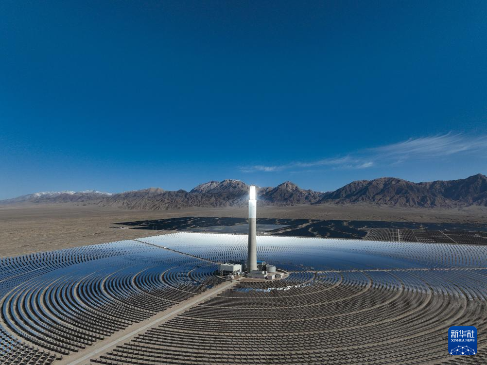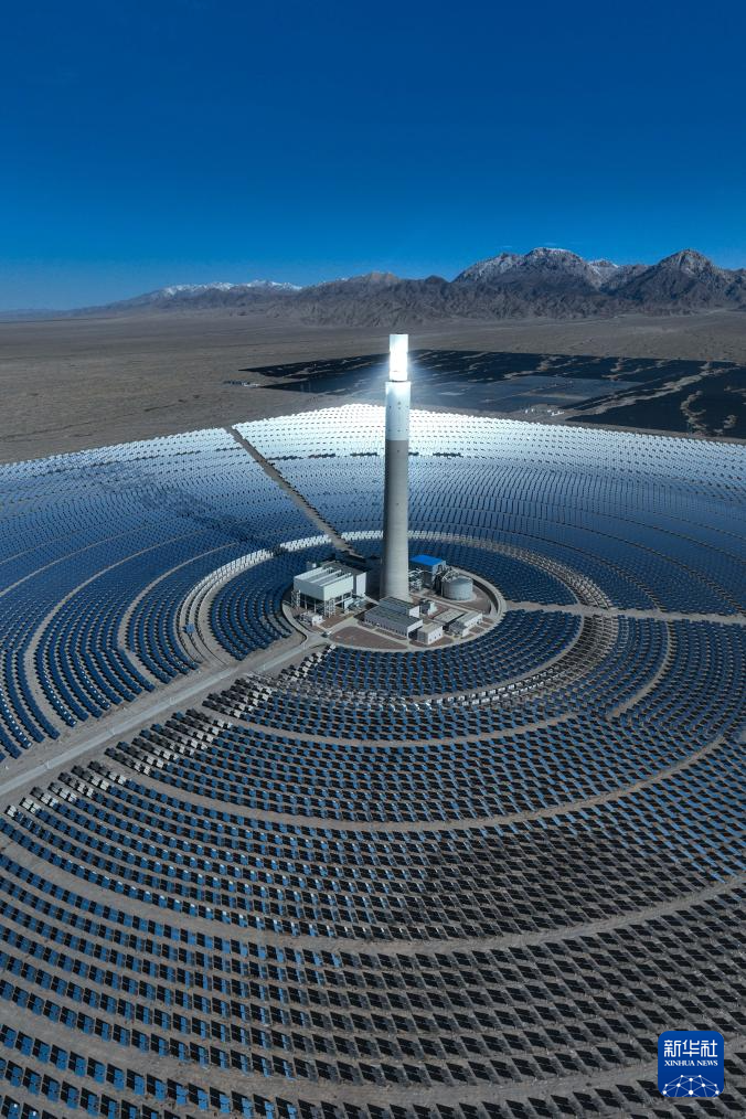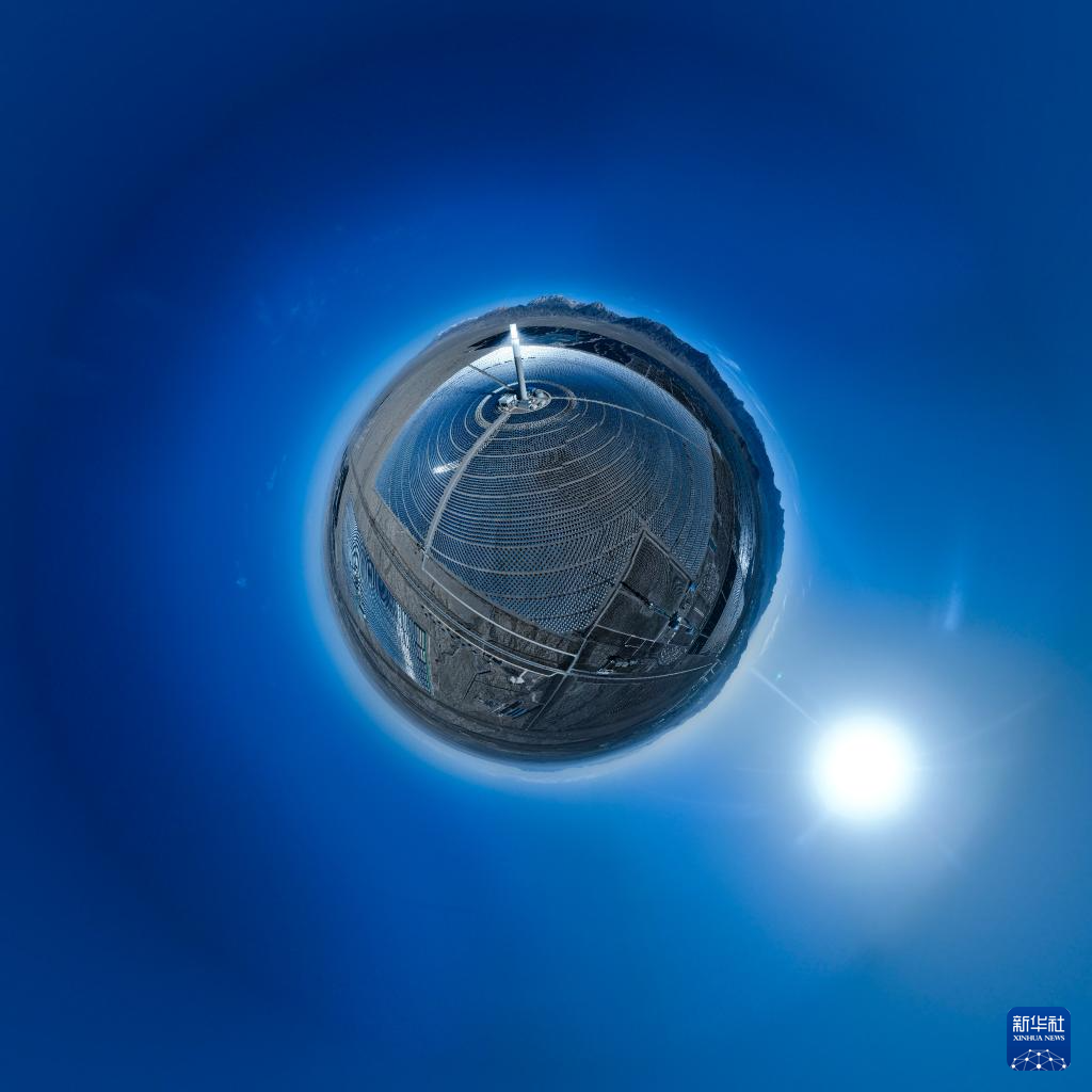 這是4月23日在青海省海西蒙古族藏族自治州德令哈市光伏(光熱)產業(yè)園拍攝的光熱電站(無人機照片)。新華社記者 張龍 攝