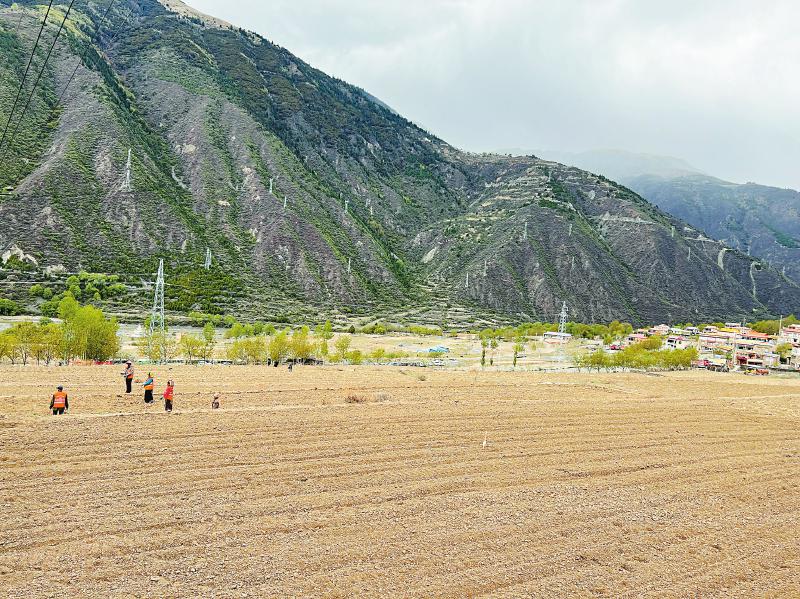 4月18日,阿壩藏族羌族自治州馬爾康市腳木足鄉(xiāng)孔龍村,村民澤郎在李浩杰的指導(dǎo)下,播種下一顆顆來自新都示范園的油菜種子。