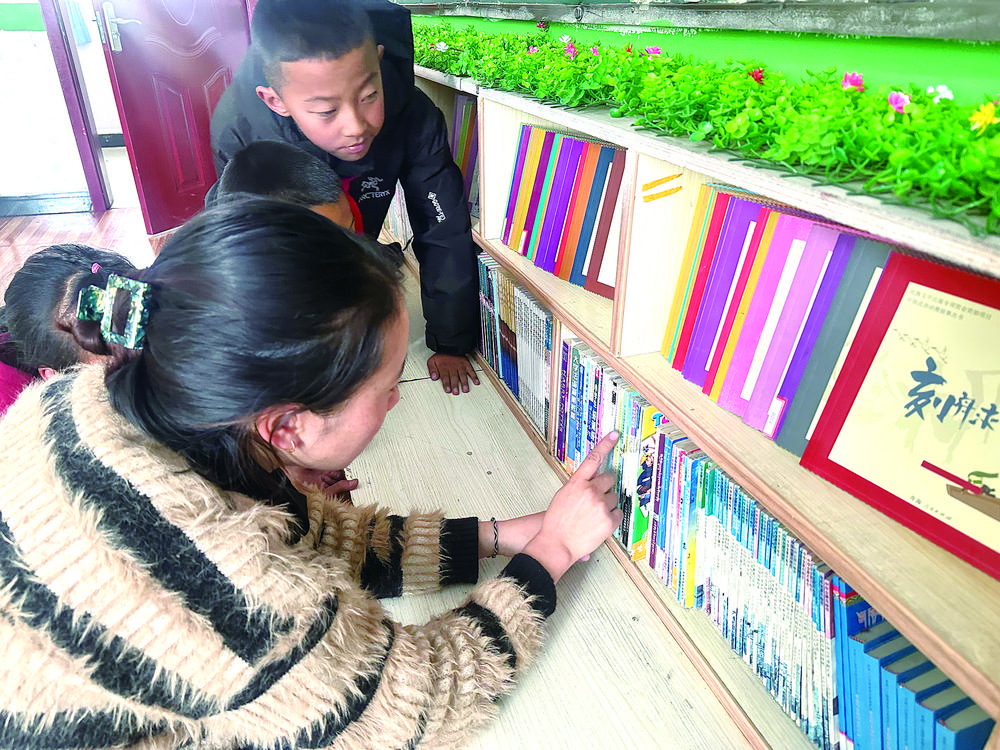清晨,校園里傳來孩子們的早讀聲,給這個(gè)平均海拔4700米的鄉(xiāng)鎮(zhèn)增添了不少活力。因?yàn)榘嗉?jí)人數(shù)較少,學(xué)校把教室隔開,開辟出一個(gè)很受孩子們喜愛的看書、休息和寫作業(yè)的區(qū)域?!艾F(xiàn)在學(xué)校為每個(gè)班級(jí)配備了希沃白板,現(xiàn)代化教學(xué)設(shè)備的引入,不僅豐富了教學(xué)手段,也使得課堂教學(xué)變得更加生動(dòng)、直觀和高效。我們可以通過希沃白板展示課件、播放視頻、進(jìn)行現(xiàn)場互動(dòng),極大地提升了學(xué)生的學(xué)習(xí)興趣和參與度?!闭讨魅尾槿照f。