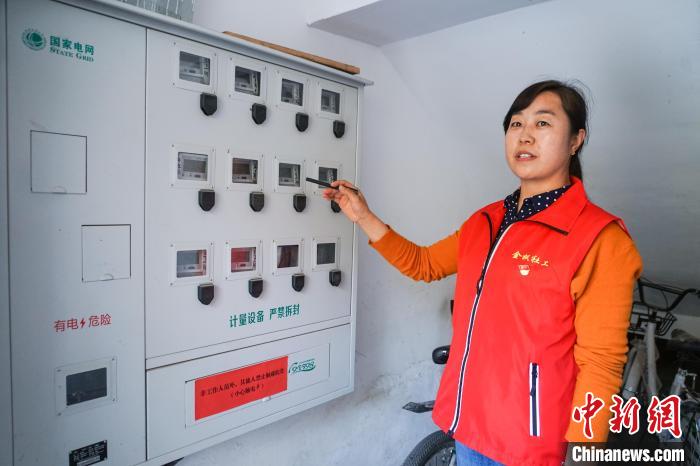 圖為園林社區(qū)黨支部書(shū)記、居委會(huì)主任喬鴻霞介紹電表分戶改造情況。馬銘言攝