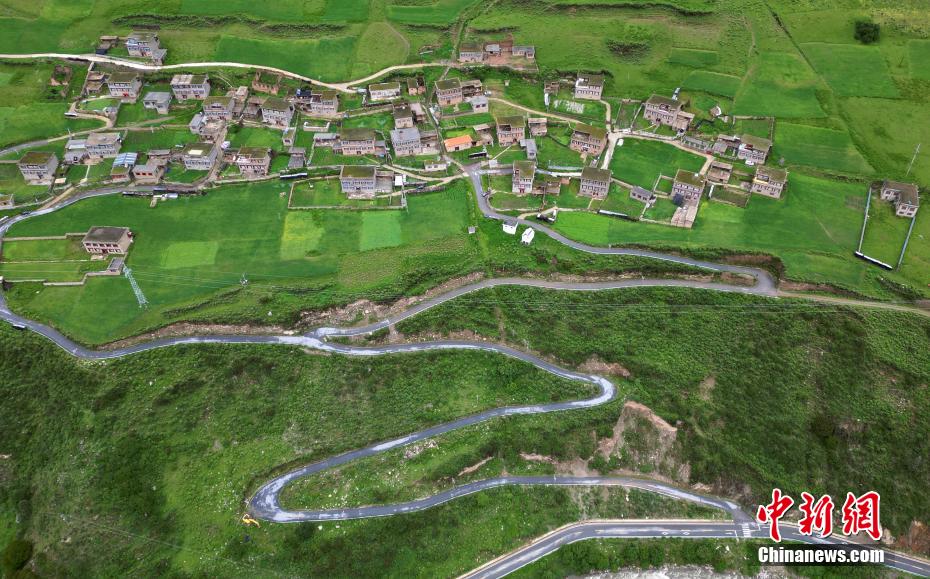 圖為6月27日,航拍措普溝景區(qū)內(nèi)的達(dá)塔村。(無人機(jī)照片)中新社記者 王磊 攝