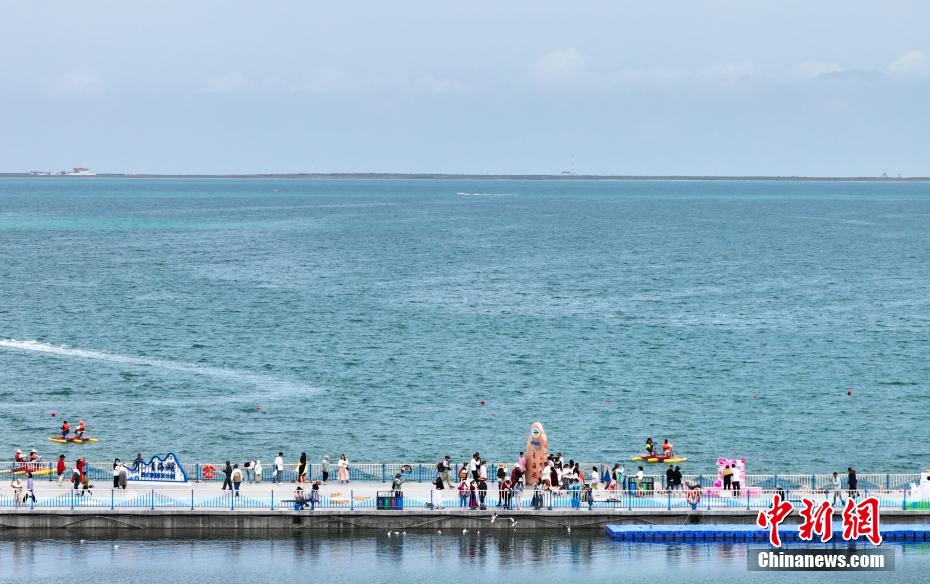 7月8日,游客在青海省海南藏族自治州共和縣青海湖二郎劍景區(qū)內(nèi)觀賞“魚鳥共生”的生態(tài)景象。中新社記者 馬銘言 攝