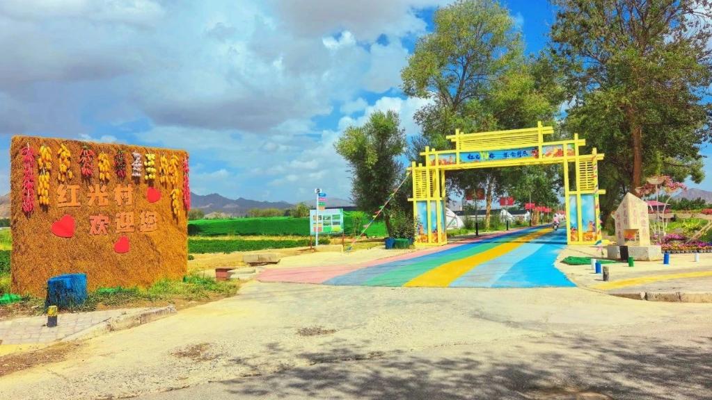 一條繽紛亮眼的“彩虹步道”從村口一直向里延伸,“彩虹步道”兩旁種滿了瓜果蔬菜,不遠(yuǎn)處還有采摘體驗(yàn)園和燒烤露營地,在青海省海西蒙古族藏族自治州德令哈市郊的紅光村,別樣的田園風(fēng)情給烈日炎炎下的德令哈增加了一絲清爽。