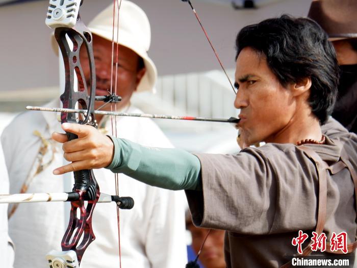 7月20日至23日,第九屆中國·青海國際民族傳統(tǒng)射箭精英賽在青海省海北藏族自治州剛察縣舉行,來自柬埔寨、蒙古國、波蘭、俄羅斯、中國等22個國家和地區(qū)的1100名射箭高手齊聚一堂,展示精湛射箭技藝。本屆賽事設(shè)置現(xiàn)代傳統(tǒng)弓、復(fù)合弓、反曲弓及牛角弓4個弓種,設(shè)置“現(xiàn)代傳統(tǒng)弓混合團體和個人”等5個競賽項目。該賽事已成為中國民族傳統(tǒng)射箭比賽中規(guī)格級別最高、民族選手最多、參賽國家和地區(qū)最廣、弓種和項目最全的國際性品牌賽事。圖為7月21日國外運動員在青海剛察舉辦的射箭賽場外試弓。中新社記者 李雋 攝