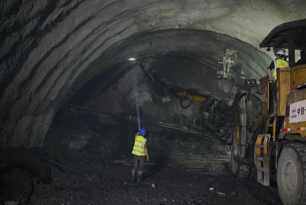 三臂鑿巖臺車正在德勝隧道中施工(資料圖)。中鐵十六局供圖