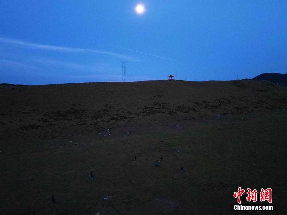 10月15日晚,在甘肅省甘南藏族自治州合作市一牧場(chǎng)內(nèi),甘南九二聯(lián)隊(duì)足球隊(duì)員在月下訓(xùn)練。該隊(duì)隊(duì)員因?yàn)槎荚诓煌胤焦ぷ?,所以長(zhǎng)期自我尋找草場(chǎng)、牧區(qū)等近場(chǎng)地訓(xùn)練,高原草場(chǎng)是他們訓(xùn)練的一大優(yōu)勢(shì)。