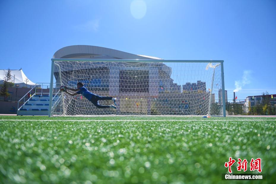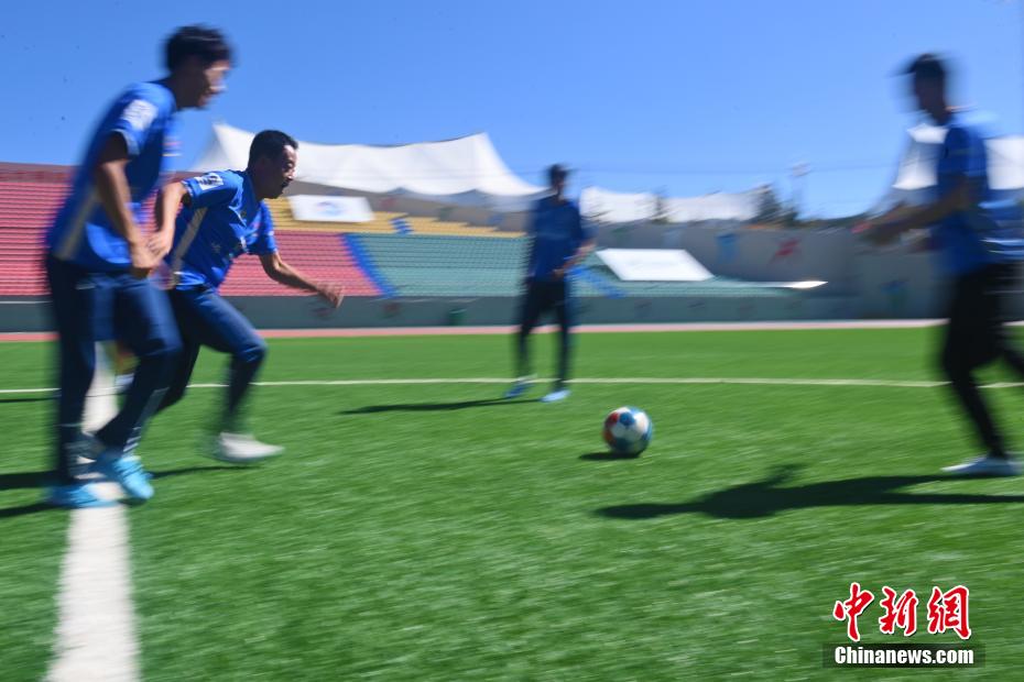10月15日,在甘肅省甘南藏族自治州合作市一足球場(chǎng)內(nèi),甘南九二聯(lián)隊(duì)足球隊(duì)員進(jìn)行訓(xùn)練。