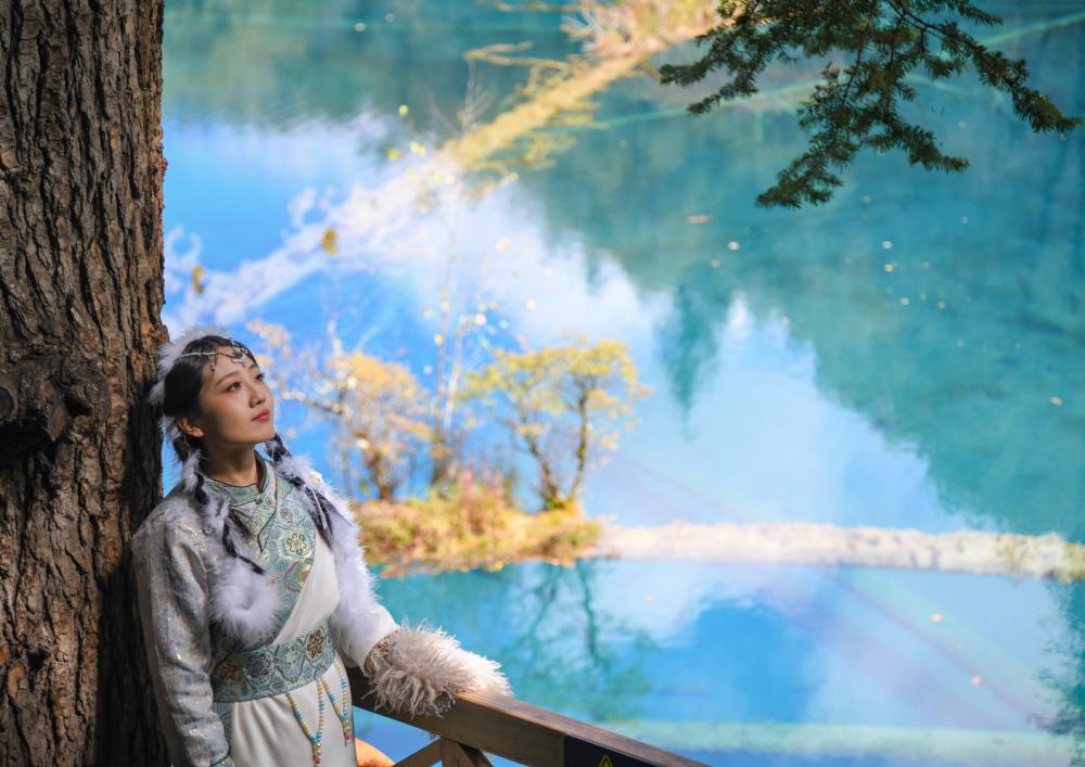 江蘇林女士的新婚蜜月之行便是來(lái)到九寨溝,她特意租了傳統(tǒng)藏族服飾、化上了特色妝容,站在五花海的棧道上,身后是碧藍(lán)湖水,身側(cè)是林影婆娑?!霸谶@么美的景色之下穿上民族服裝,我想拍出來(lái)的照片一定很美!”
