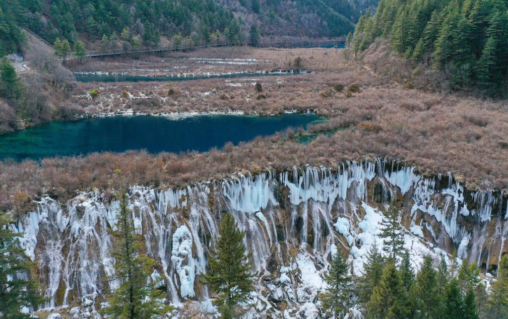 這是冬季在九寨溝景區(qū)拍攝的諾日朗瀑布形成的冰瀑景觀。新華社記者 王曦 攝