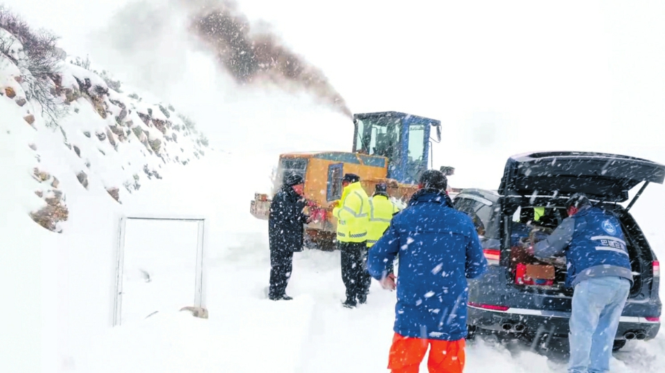 聯(lián)合多部門營救推土機(jī)鏟雪護(hù)送救援人員