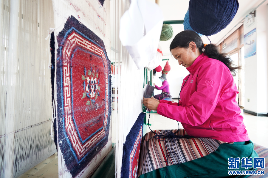 西藏阿里地區(qū)改則縣麻米鄉(xiāng)村民崗增在噶爾縣康樂(lè)新居服裝地毯加工廠里工作(7月25日攝)。2017年,崗增和家人搬遷到噶爾縣康樂(lè)新居易地扶貧搬遷安置點(diǎn),住進(jìn)了125平方米的新居。崗增還就近在安置點(diǎn)的服裝地毯加工廠找到了工作,每個(gè)月有3000元左右的收入。新華社記者詹彥 攝