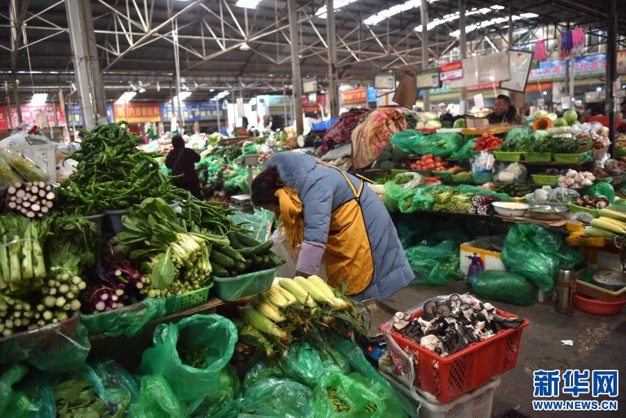 拉薩市藥王山農貿市場蔬菜區(qū),商戶在整理菜品(2019年12月29日攝)。 新華社記者 周錦帥 攝