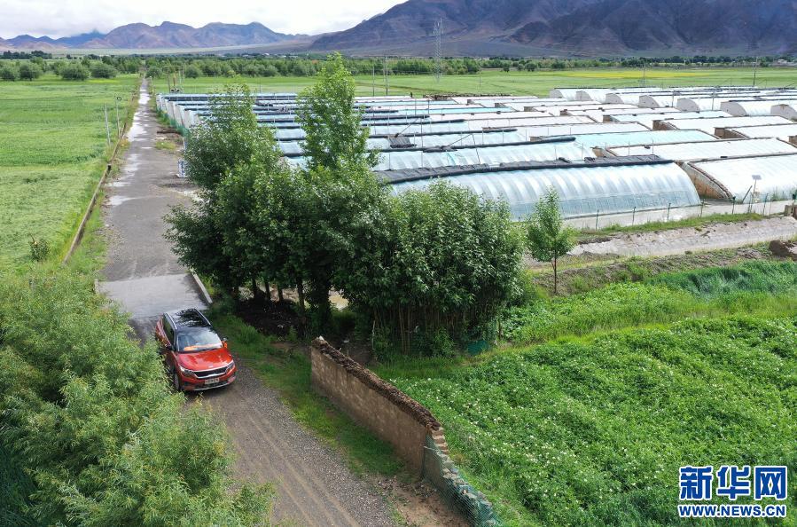 位于西藏日喀則市白朗縣的蔬菜生產基地一角(2020年8月3日無人機拍攝)。新華社記者 李賀 攝