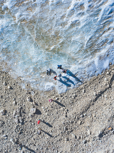 科研人員在冰面上行進。